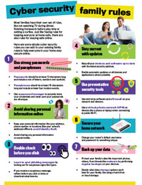 Here are some simple cyber security steps and rules you can add to your existing family rules to help everyone in your home stay secure online.