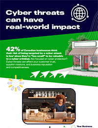42% of Canadian businesses think their risk of being targeted by a cyber attack is lowFootnote 1 since they’re “too small” to be valuable to a cyber criminal. Not focused on cyber protection? Cyber threats can affect your customer trust, supplier relations, and business reputation and competitiveness.