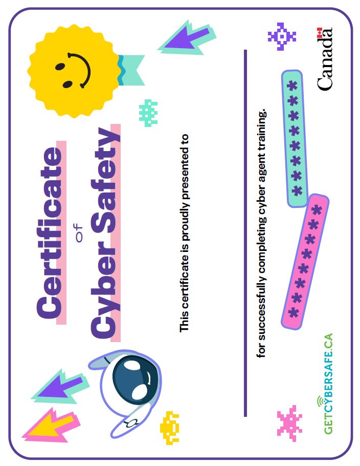 Ask for a trusted adult’s permission to visit GetCyberSafe.ca/Kids to see what else you can do to get cyber safe today!