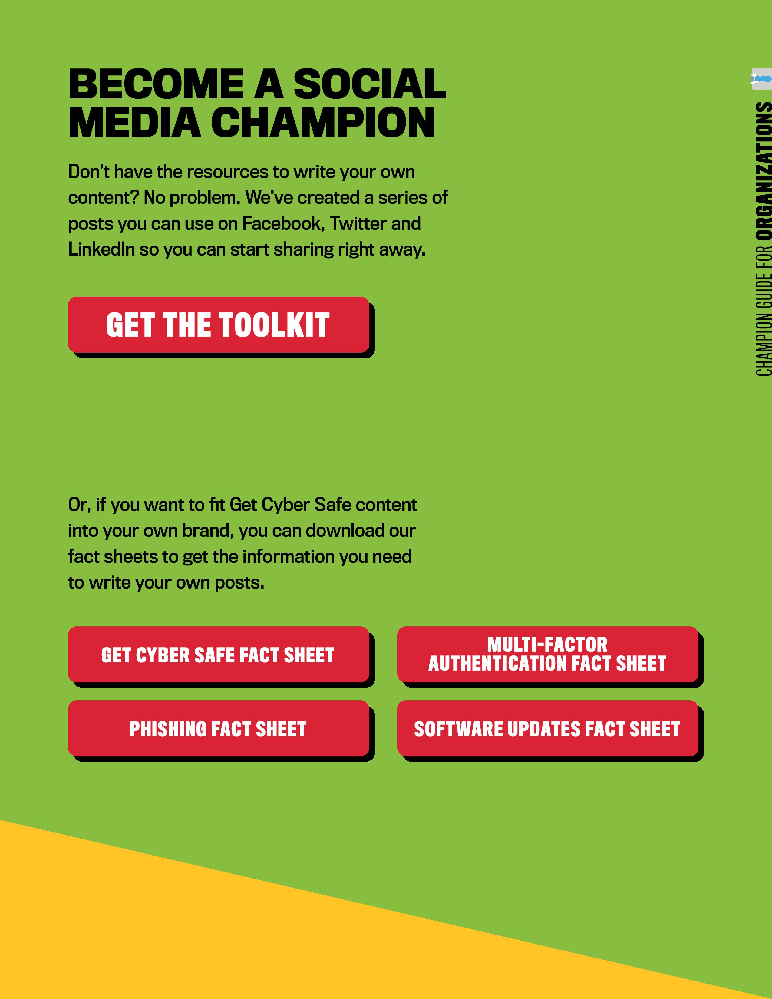 - Share our pre-crafted social media content, or write your own using our Get Cyber Safe fact sheets