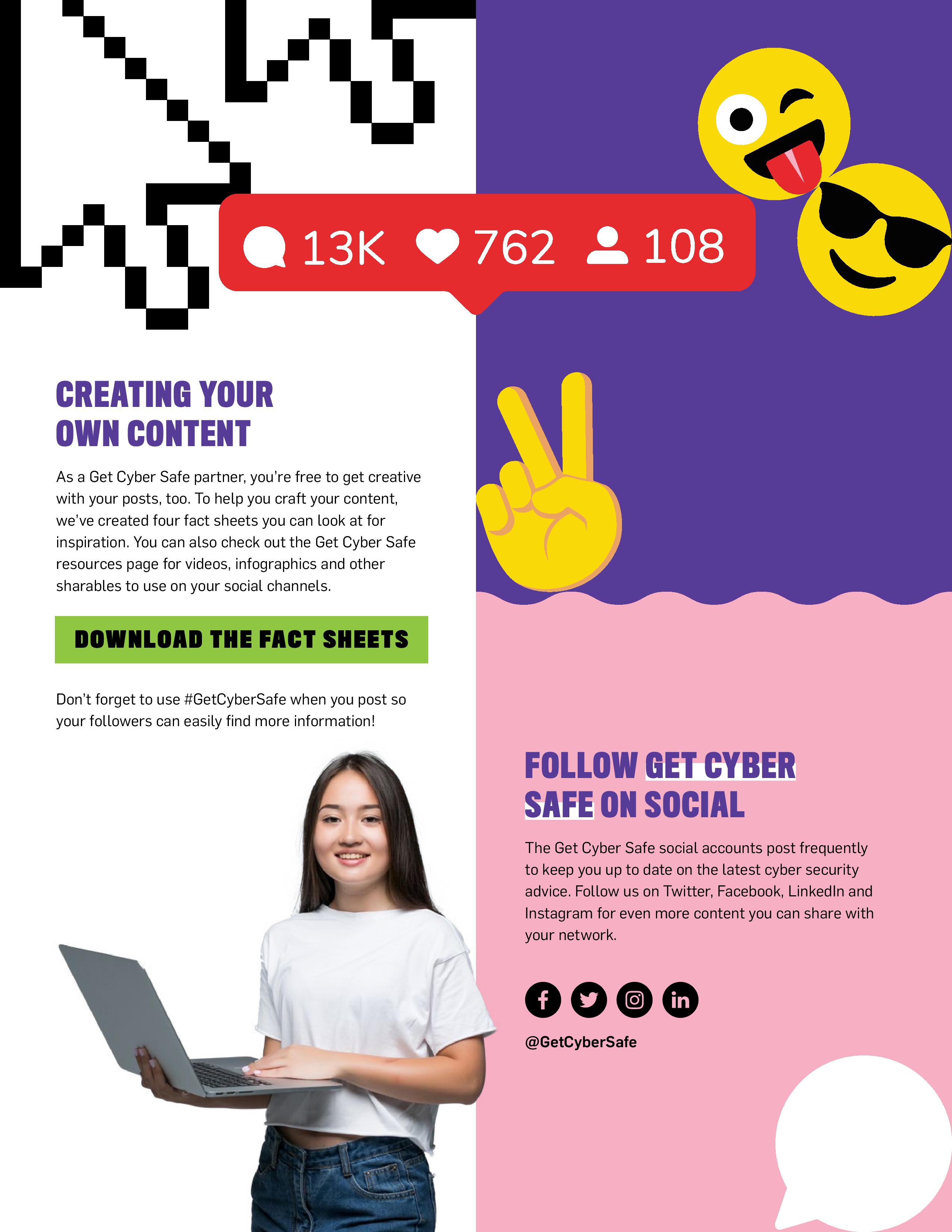 This social media toolkit has everything you need to make being a Get Cyber Safe champion as easy as possible. The kit includes: