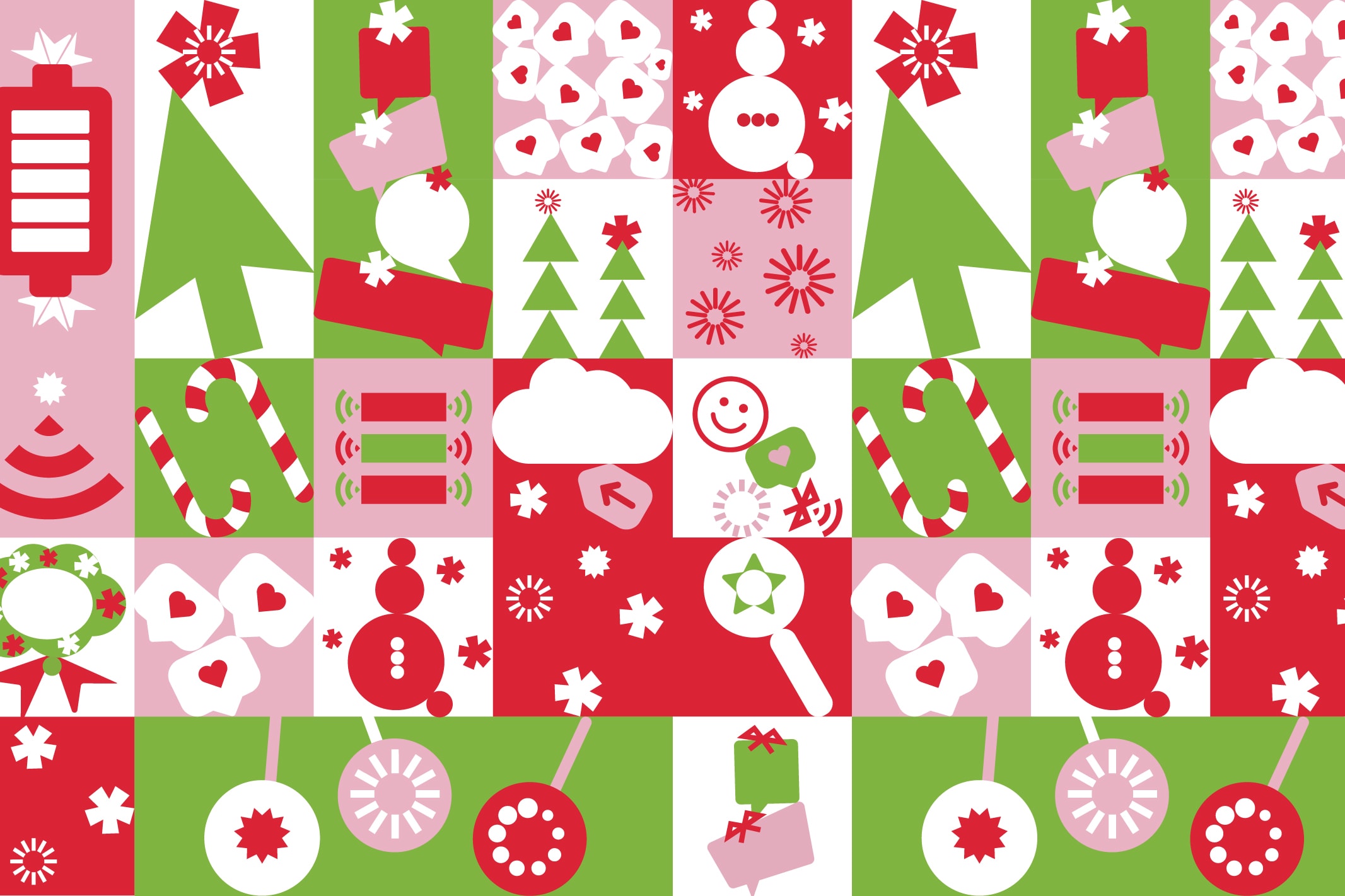 Images of cursors, text bubbles, asterisks and other computer symbols combined in holiday shapes
