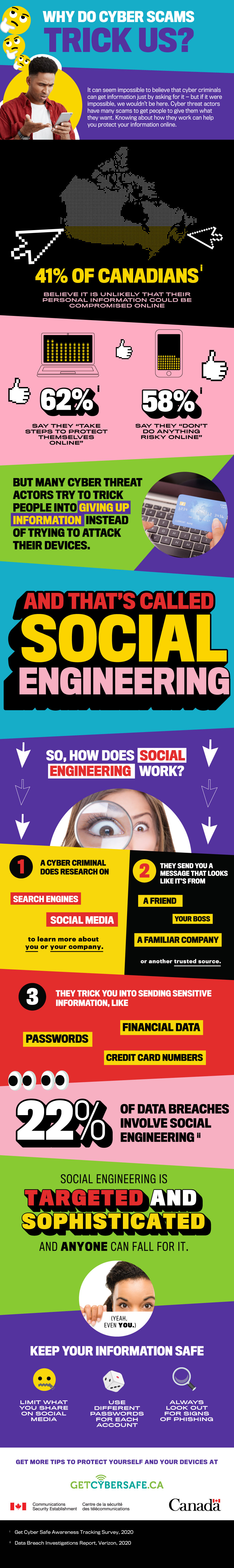 It can seem impossible to believe that cyber criminals can get information just by asking for it — but if it were impossible, we wouldn’t be here. Cyber threat actors have many scams to get people to give them what they want. Knowing about how they work can help you protect your information online.