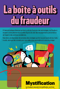 À l’aide de tactiques diverses qui tirent profit de l’évolution des technologies, les fraudeurs essaient continuellement de nouvelles façons de voler des renseignements personnels et de l’argent à des victimes canadiennes.