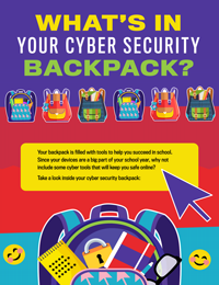 Ton sac à dos est rempli d'outils pour t'aider à réussir à l'école. Puisque tes appareils jouent un rôle important dans ton année scolaire, pourquoi ne pas y inclure quelques cyberoutils qui te garderont en sécurité en ligne?